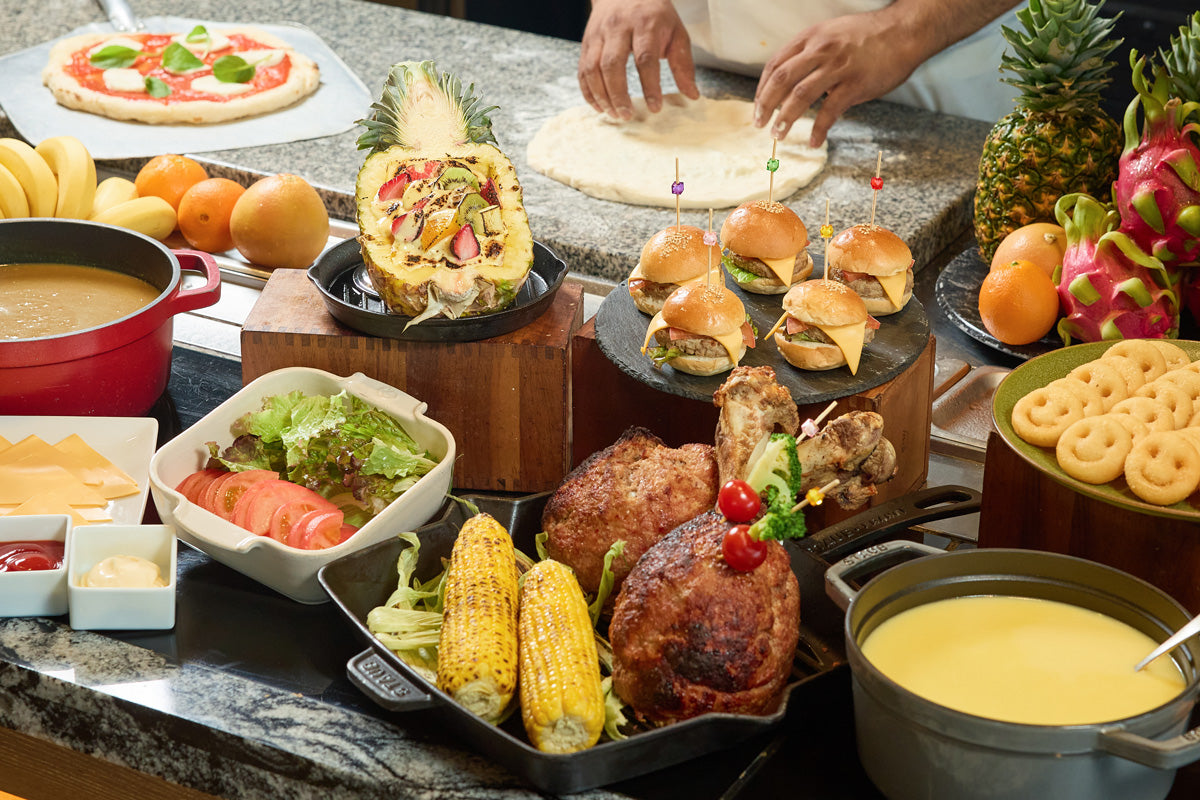 シェフが立ち並ぶライブキッチンから繰り出される料理とスイーツを、ご家族やご友人とお楽しみください。