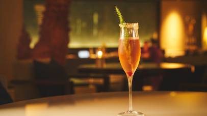 ハイビスカスの紅色がクリスマスらしいスパークリングワインがベースのカクテル。