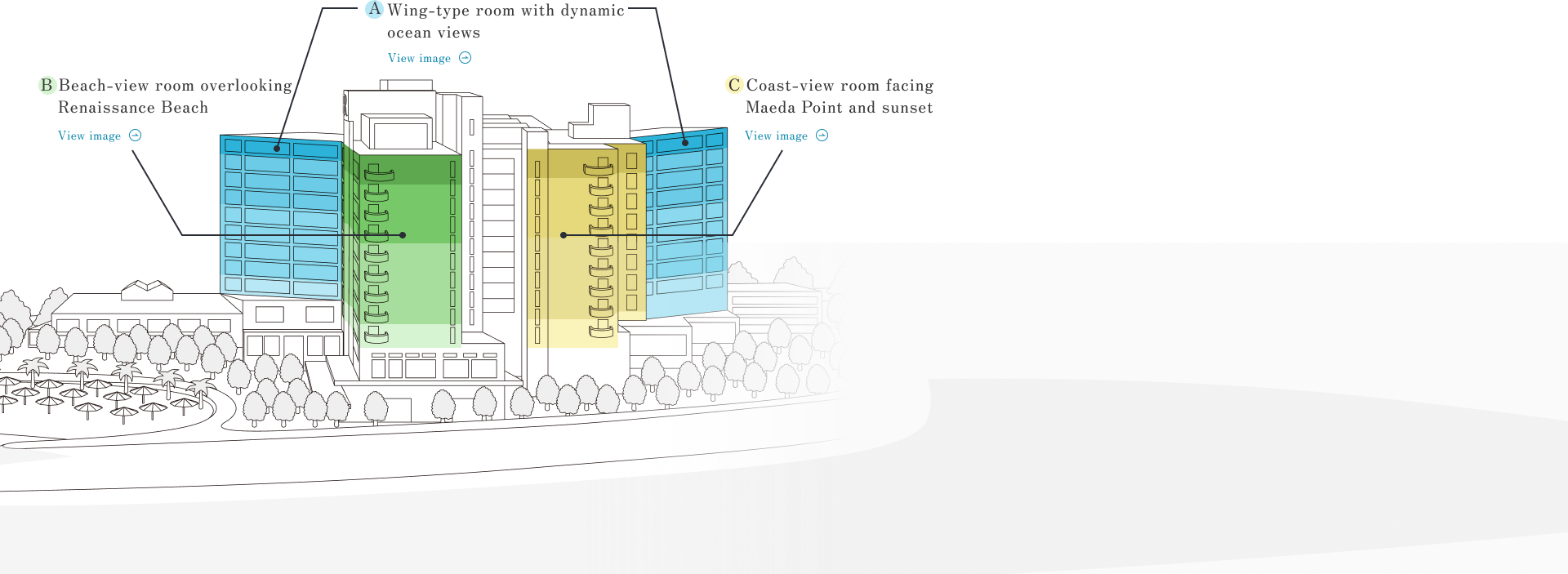 A lively beach view overlooking the white sand beach and pool, and a coast view where you can enjoy the changing natural sea and sky. You can choose any view according to your preference.