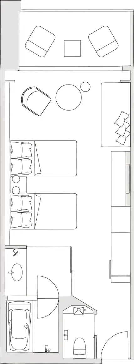 '최고의 수면의 질'을 선사하는 미국 시장점유율 1위 브랜드 씰리(Sealy)사의 매트리스를 사용합니다. 최첨단 인체공학을 기반으로 개발된 매트리스는 편안한 잠자리와 상쾌한 기상을 약속합니다.
