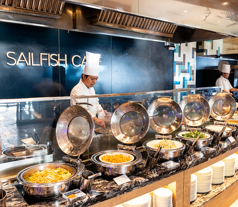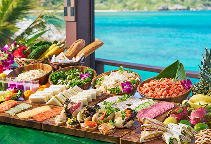 5つのS(スープ、サラダ、サンドイッチ、スムージー、スイーツ)をテーマにしたハワイアンブレックファーストブッフェ。トロピカルな青い海に囲まれて、潮風を感じながらヘルシーな朝食をお楽しみください。
