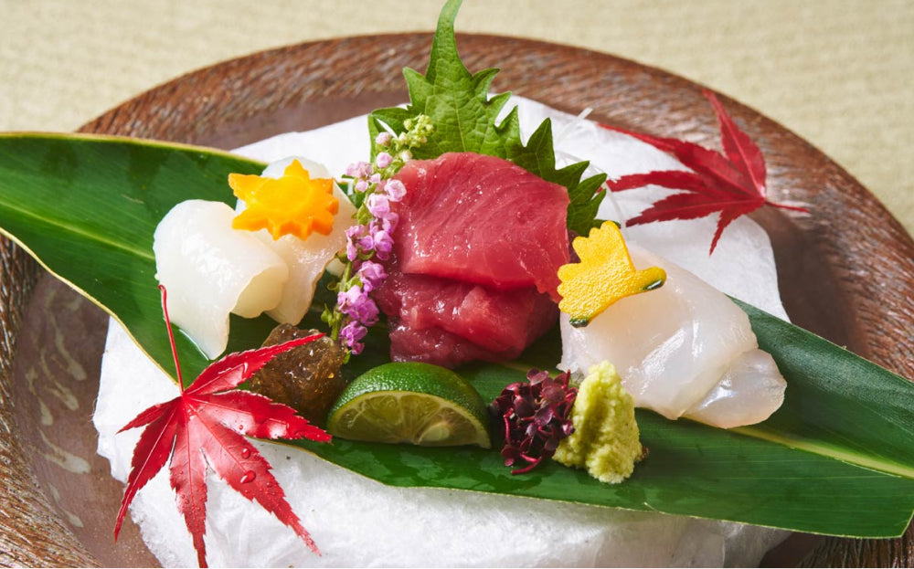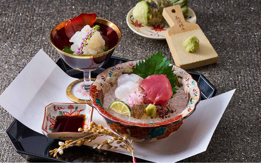 全国と県産の旬の食材を贅沢に味わう会席料理。 料理長が食材を吟味し、個性を活かした一品一品に仕上げました。