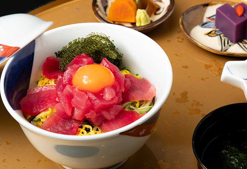 県産鮪の鉄火丼やイカスミ汁、揚げたての天麩羅などをお召し上がりいただけます。