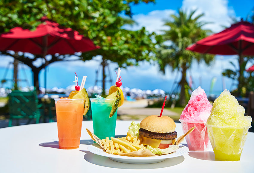 ハンバーガーやホットドッグ、かき氷など、ビーチやプールで遊ぶ合い間に気軽にお楽しみください。